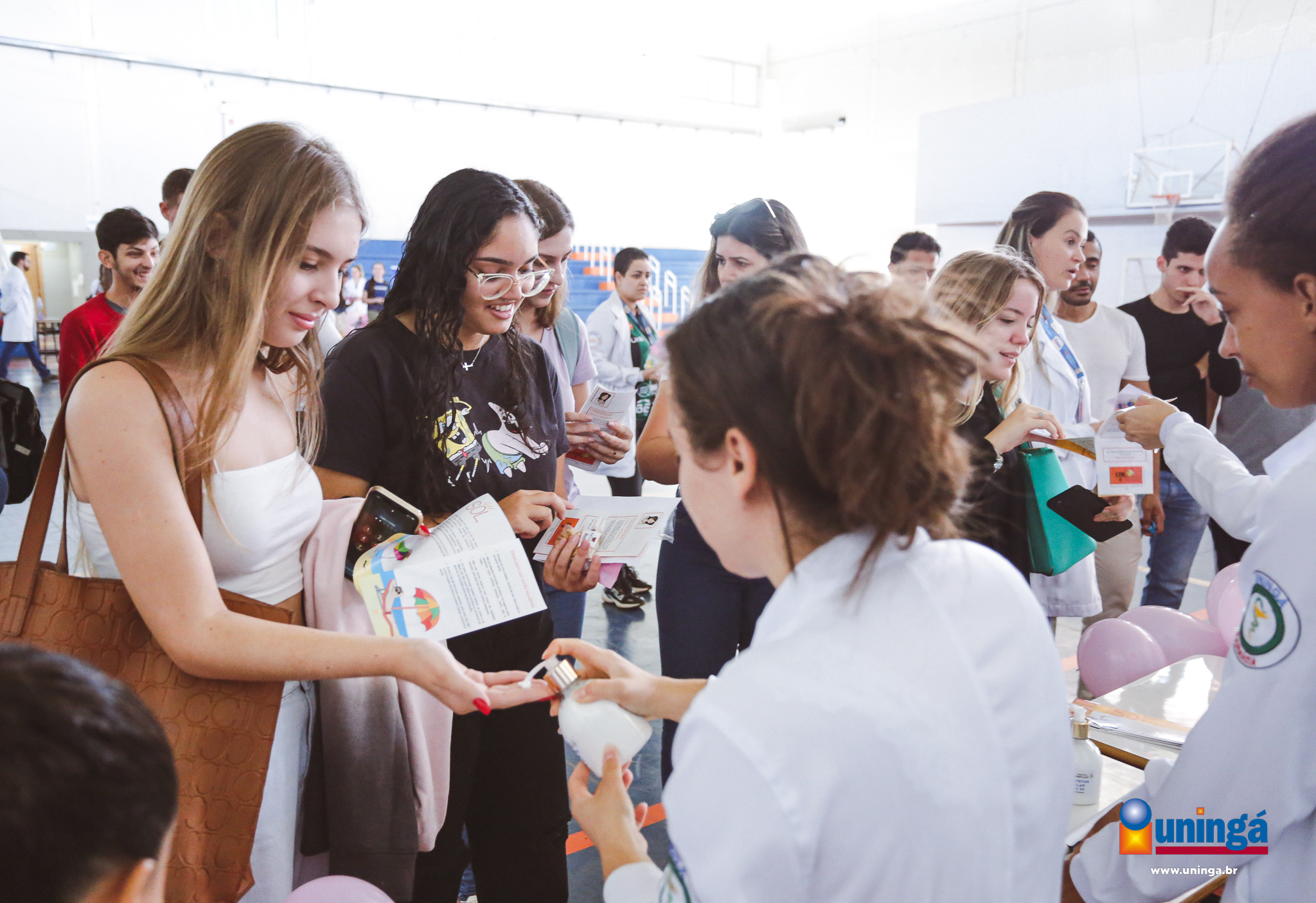 Na manhã de hoje (08), em comemoração ao Dia Internacional da Mulher, os cursos da Uningá, prepararam uma manhã com ações da área da saúde, como nutricionais, farmacêuticas, biomédicas, terapêuticas, estéticas, além de atividades físicas.