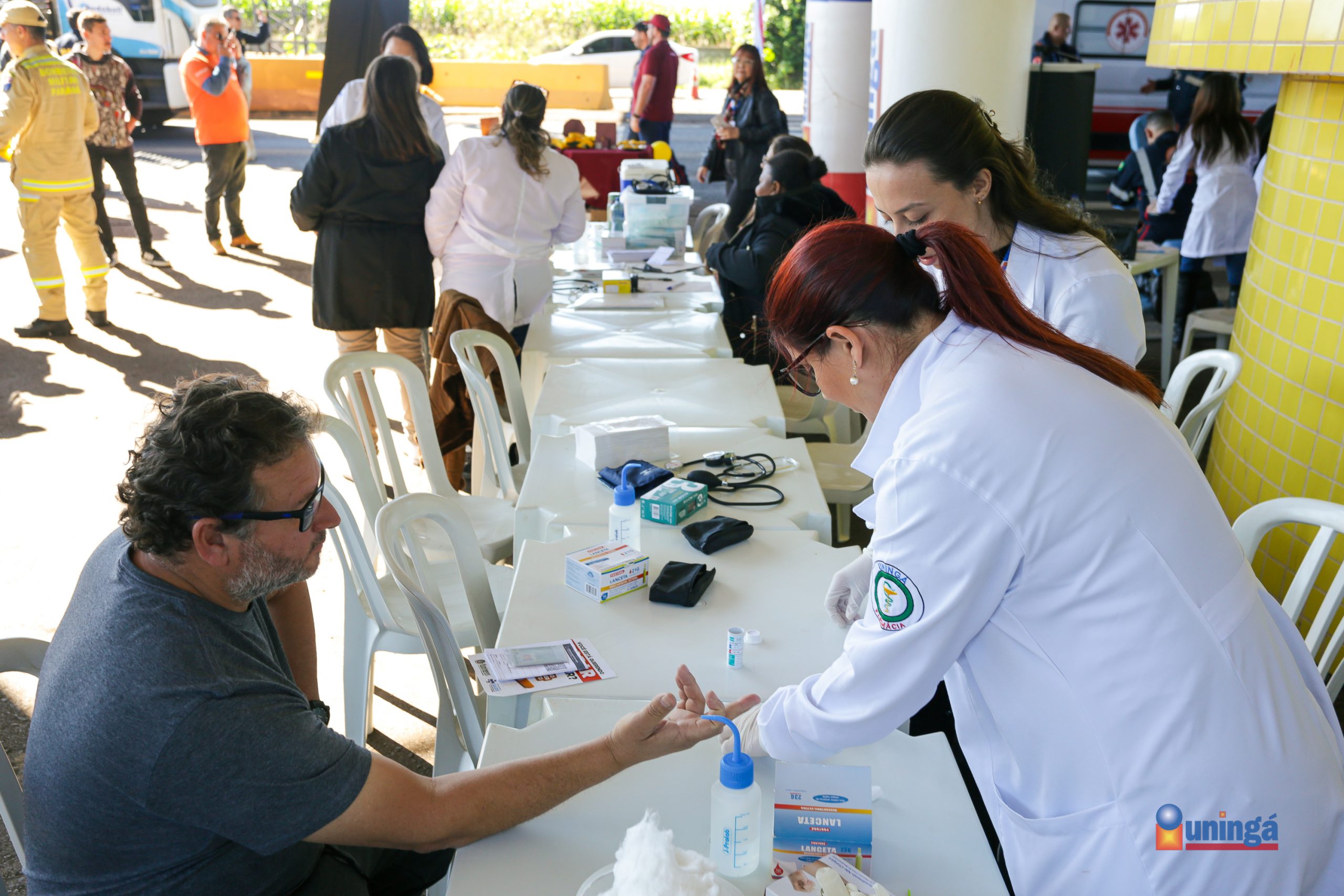Os alunos dos cursos de Medicina, Farmácia, Estética e Cosmética, e Psicologia da Uningá se juntaram para oferecer diversos serviços de saúde e bem-estar à equipe da Polícia Rodoviária e alguns condutores que passavam pelo local.