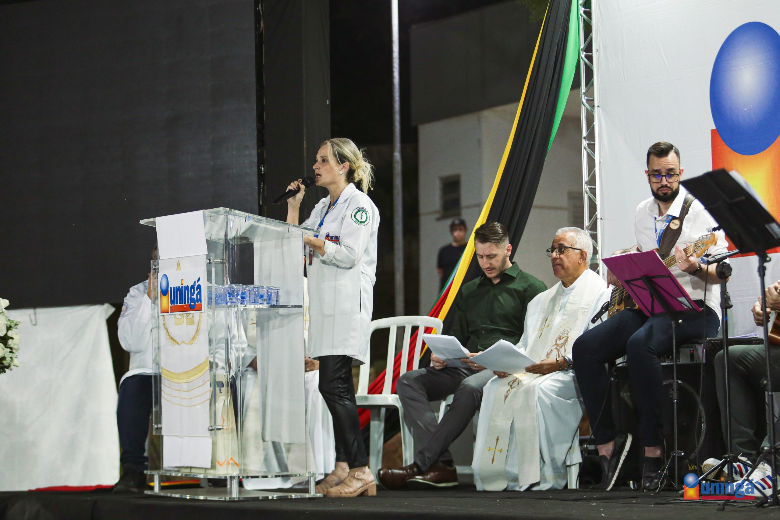 A cerimônia contemplou diversas crenças e foi idealizada para que os discentes se sentissem acolhidos, independente de vínculo religioso. Durante a celebração, representantes de turmas apresentaram seus objetos de estudo e trabalho para que fosse simbolizado um momento de benção ao período de graduação e carreira.