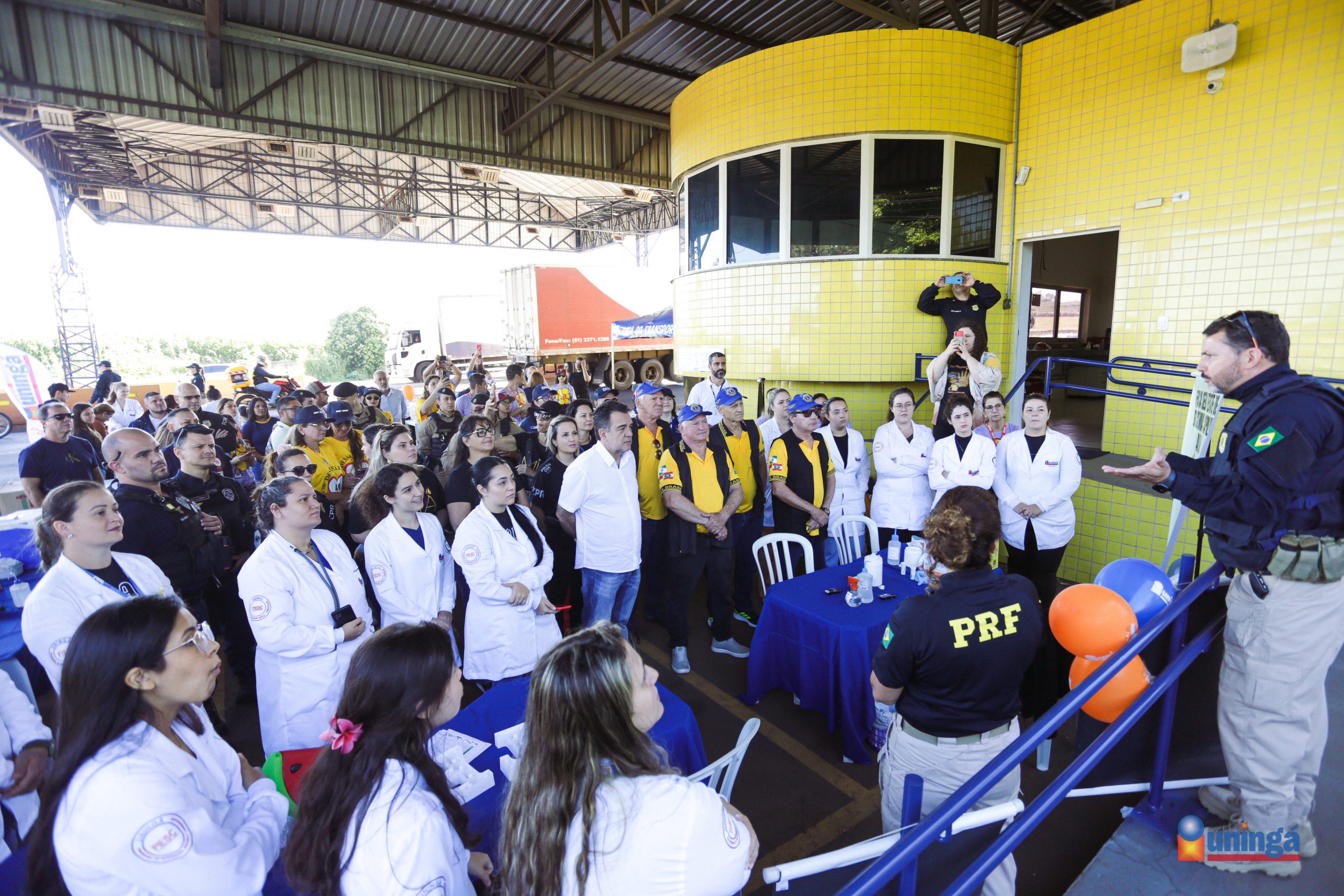 Na manhã desta quinta-feira (8) os cursos de Enfermagem, Farmácia, Medicina e Nutrição da UNINGÁ marcaram presença em uma importante ação educativa realizada na Unidade Operacional da Polícia Rodoviária Federal (PRF) de Mandaguari. Promovida pela Corporação em parceria com o Núcleo da Infância e Juventude, e Polícia Civil; a atividade fez parte da Campanha Maio Amarelo 2025 e esteve integrada ao Maio Laranja.
