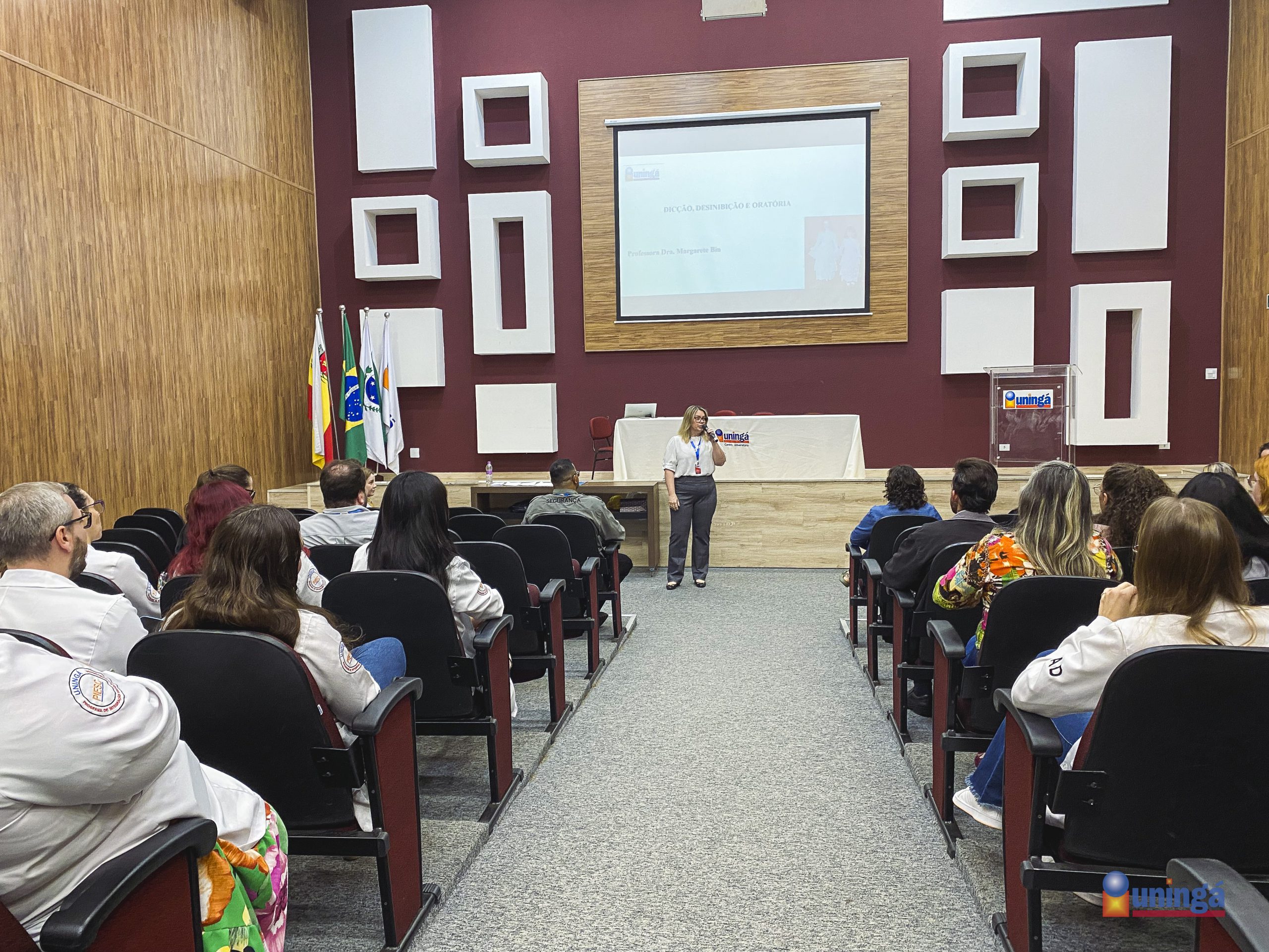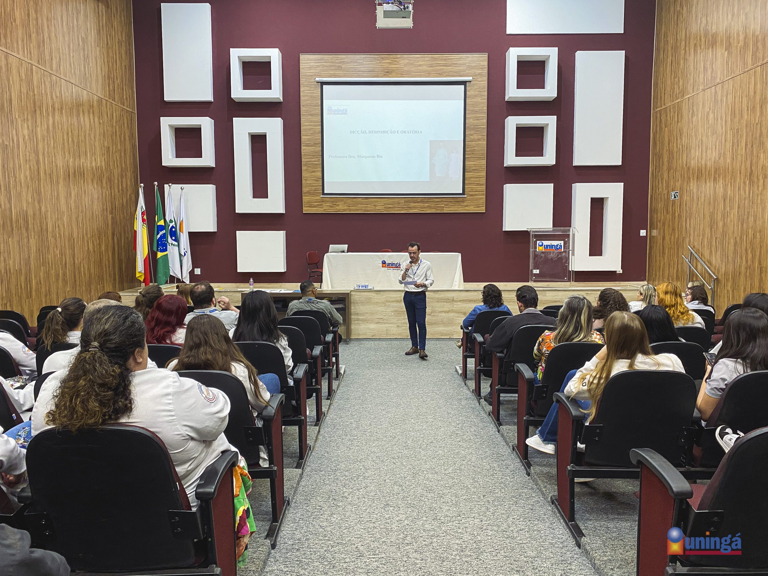 A UNINGÁ está sempre em busca de fortalecer atualização e adaptação profissional aos colaboradores da Instituição, promovendo cursos periódicos de formação continuada. No sábado (31), centenas de pessoas se reuniram no Anfiteatro Anísio Teixeira para o desenvolvimento em dicção, desinibição e oratória; ministrado pela Profª. Dra. Margarete Bin.