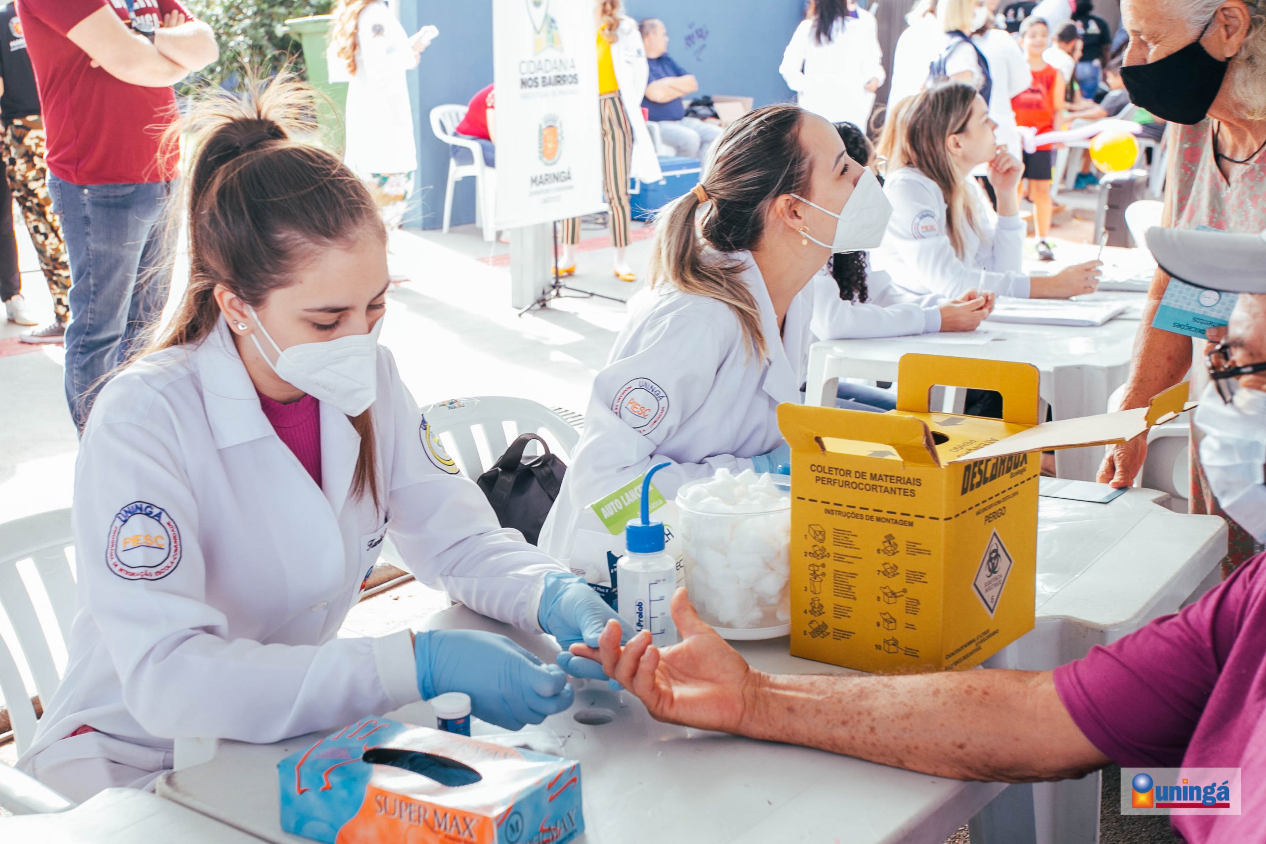 A UNINGÁ esteve presente com os cursos de Fisioterapia, Odontologia, Nutrição, Direito, Psicologia, Biomedicina e Enfermagem trabalhando a promoção da saúde a comunidade realizando aferição de pressão, instruções de higiene bucal, testes rápidos de tipagem sanguínea e teste de glicemia capilar, orientações psicológicas, nutricionais e jurídicas.