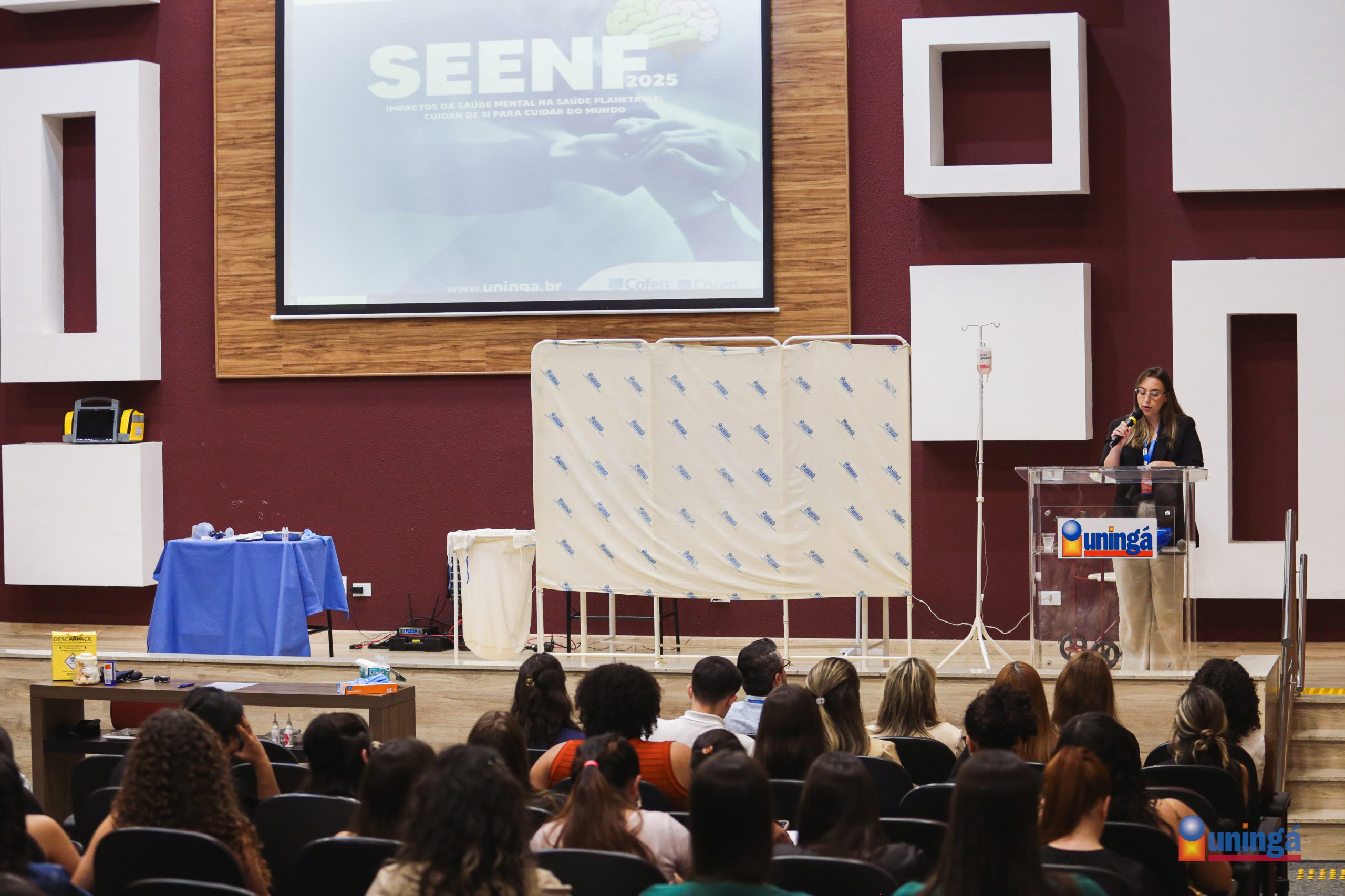 Com um olhar atento às demandas contemporâneas da saúde, a Semana de Enfermagem da UNINGÁ teve início na quarta-feira (21) no Anfiteatro Anísio Teixeira, reunindo acadêmicos e professores em torno de um tema urgente e necessário: “O Impacto da Saúde Mental na Saúde Planetária: cuidar de si para cuidar do mundo”.