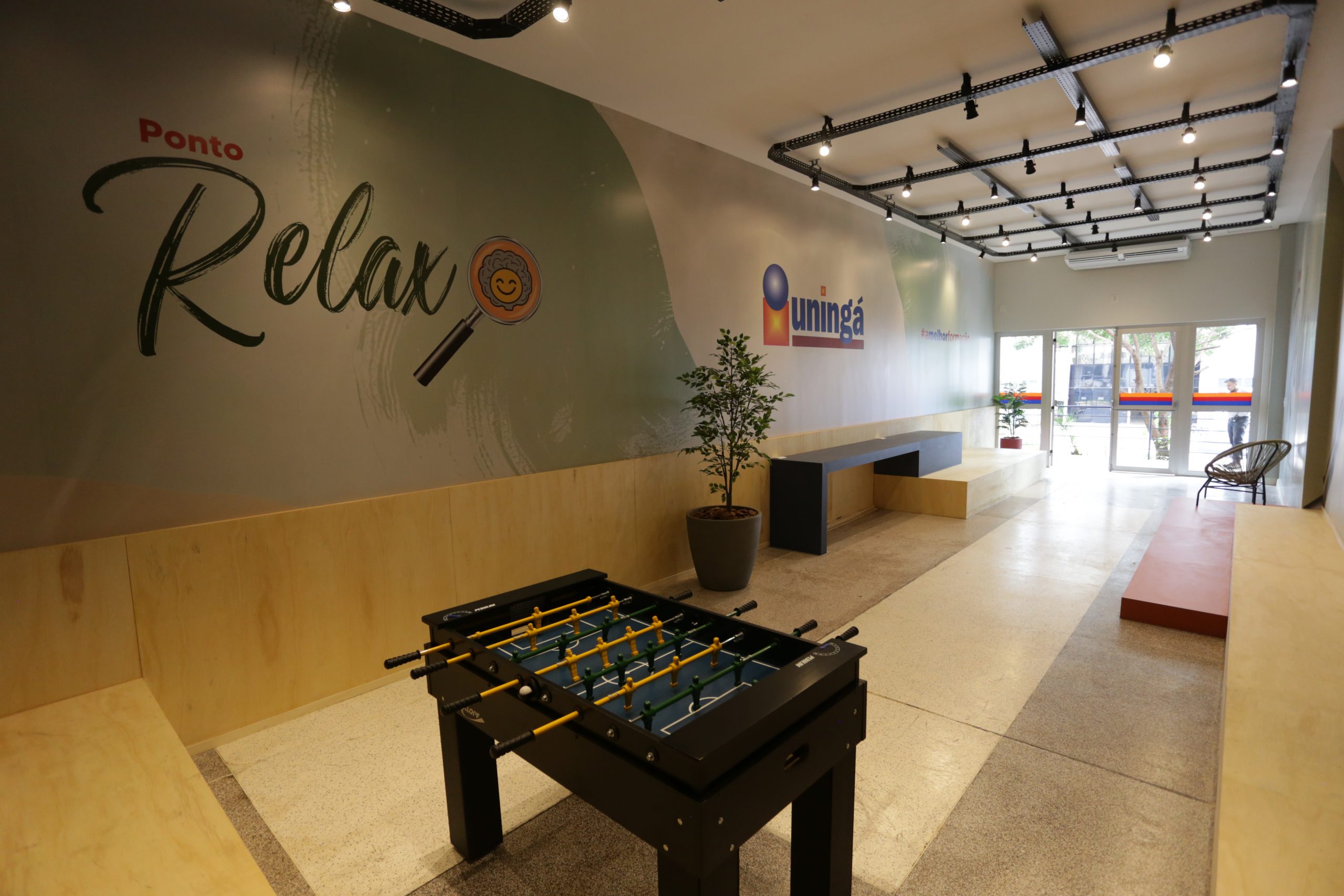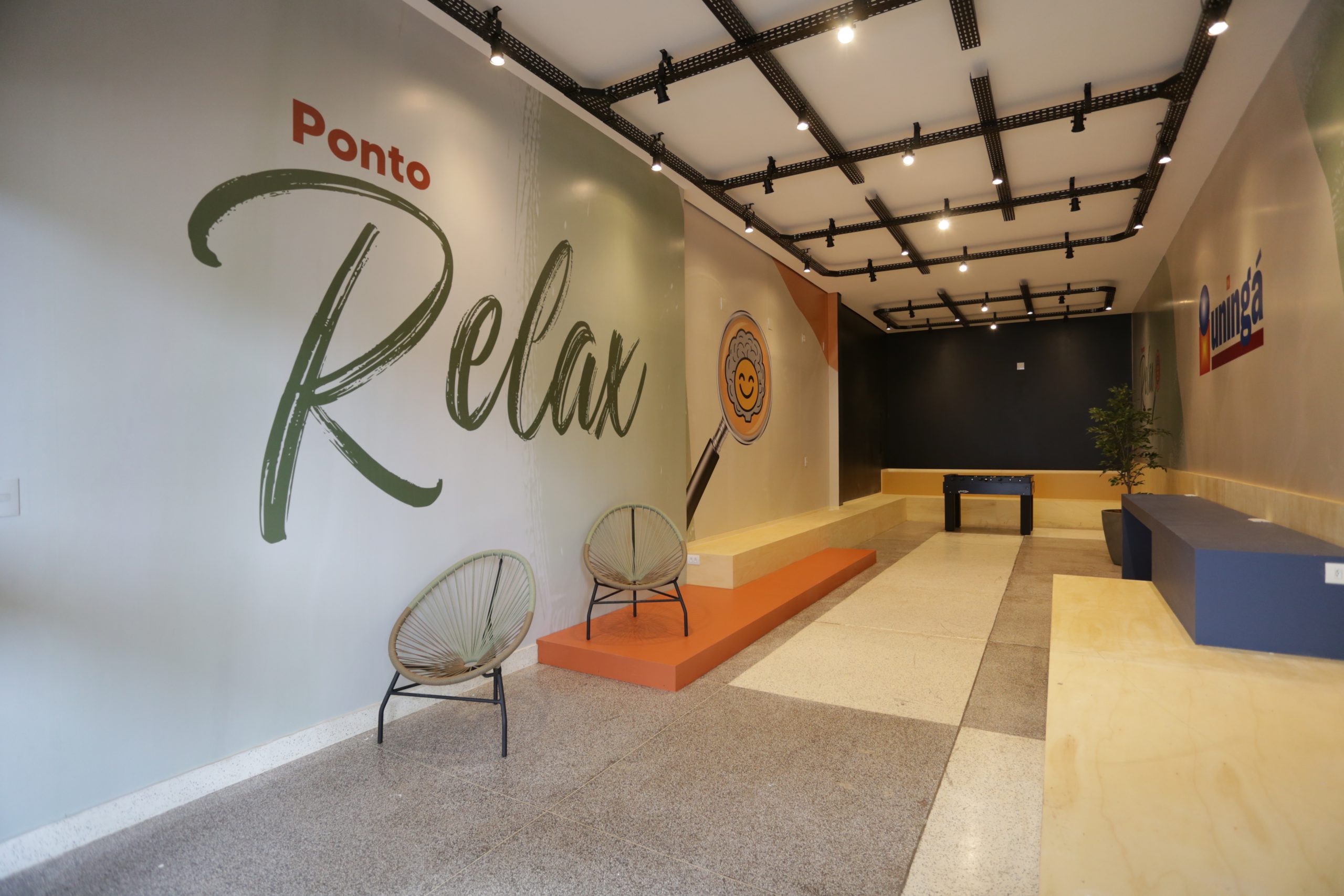 - Ponto Relax – Ambiente dedicado ao descanso e aconchego da comunidade interna, fundamental para o equilíbrio entre os desafios acadêmicos e o bem-estar físico e emocional dos estudantes; sendo um refúgio para relaxar, recarregar as energias e assim, melhorar a concentração e rendimento durante os estudos. Localizado no Bloco N, o local conta com iluminação adequada, colchonetes fixos, almofadas, cadeiras, tomadas e mesa de pebolim.
