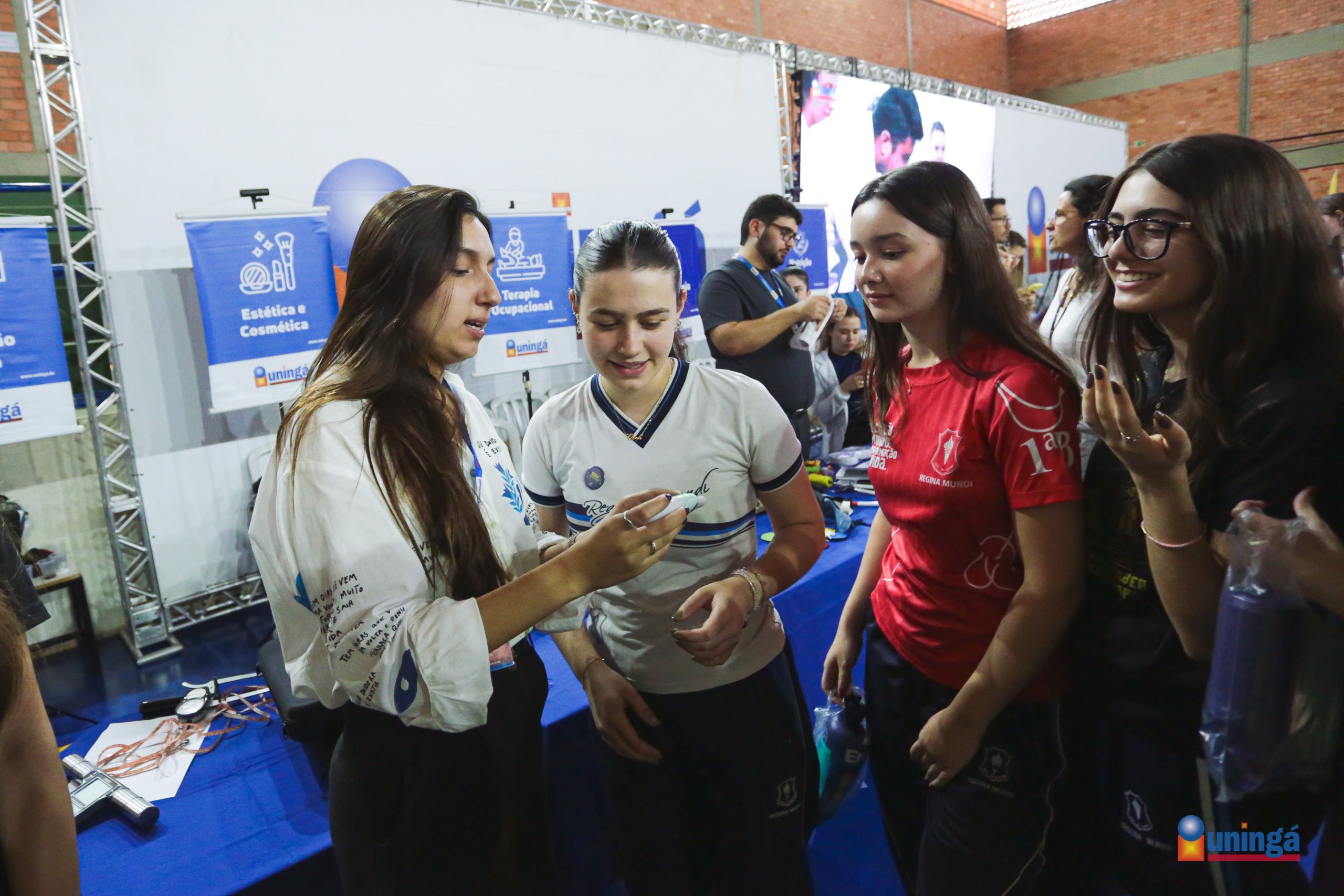 Os Coordenadores dos Cursos de Graduação Presencial da UNINGÁ estiveram presentes na quinta-feira (14) no Colégio Regina Mundi para atender as turmas do Ensino Médio com a Mostra de Profissões. A ação tem o objetivo de auxiliar os estudantes na escolha de futuras profissões e proporcionar interação com profissionais atuantes, esclarecendo dúvidas sobre o mercado de trabalho, desafios e demandas dos setores.