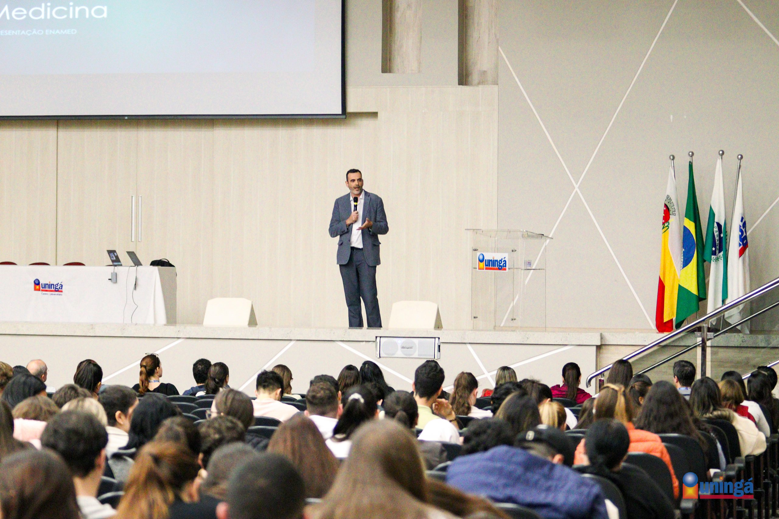 Na tarde desta quarta-feira (11) a UNINGÁ realizou um importante encontro no Anfiteatro Darcy Ribeiro com os estudantes do curso de Medicina, do 1º ao 6º ano. O evento teve como objetivo apresentar os principais Processos Avaliativos da Instituição de Ensino Superior (IES) e reforçar o papel estratégico dos acadêmicos nesse contexto.